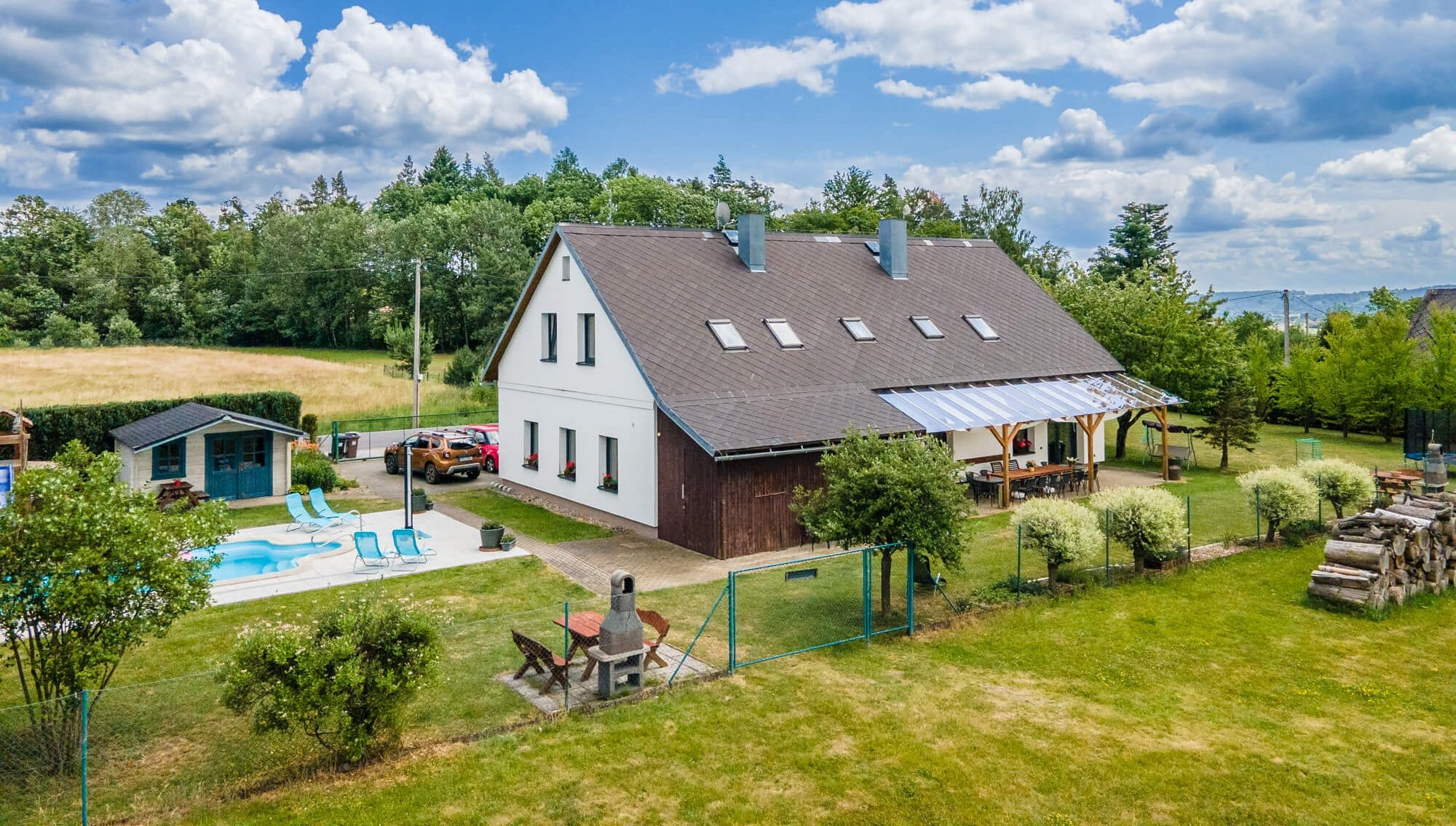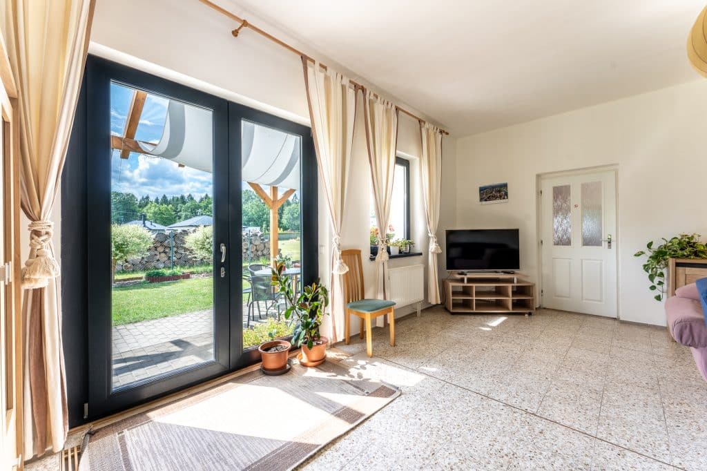 Vila Les Království je rozdělena na dva samostatné prostorné apartmány. Vila se nachází blízko přehrady Les Království (500 m), s výhledem na místní horu Zvičinu (cca 10 km) a s dobrým autobusovým spojením do Dvora Králové (7 km). Vila Les Království stojí na pozemku o celkové rozloze 5000 m2. K venkovnímu vyžití slouží hostům především krytý bazén, který je vyhřívaný solárními panely.